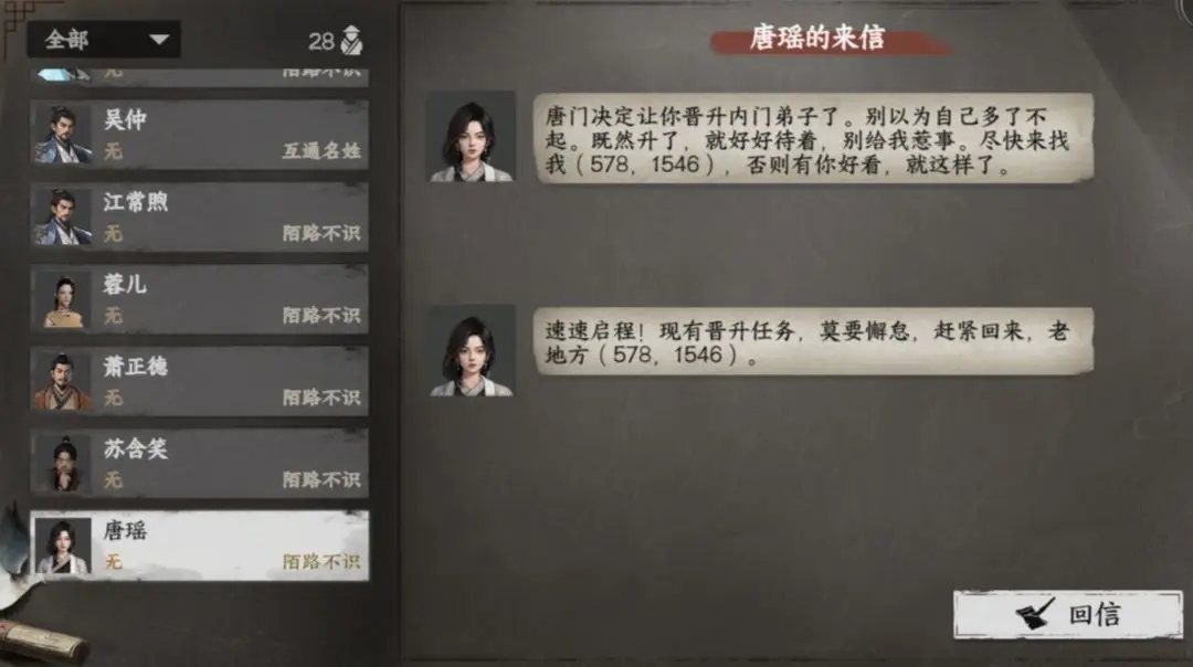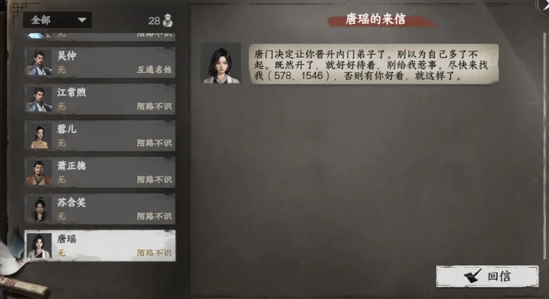 3、出现江湖故事:维护机关,跟随指引完成任务后晋升关门弟子
