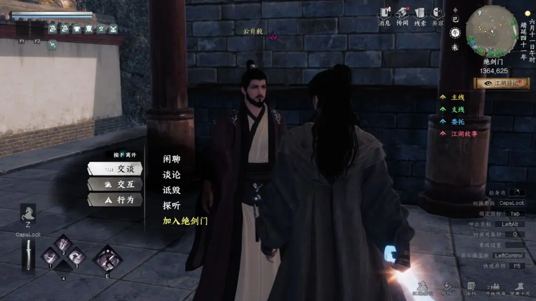 4、然后来到1364,625交谈云肖毅加入绝剑门