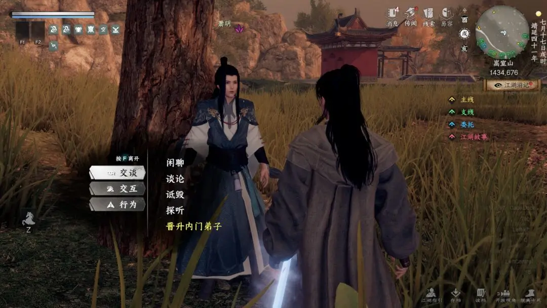 3、出现江湖故事:端倪初现,跟随指引完成任务后即可晋升内门弟子
