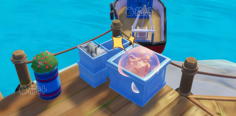 码头2号船前的蓝箱子里