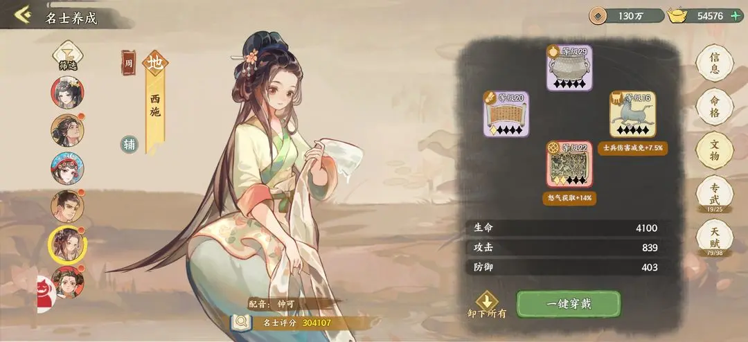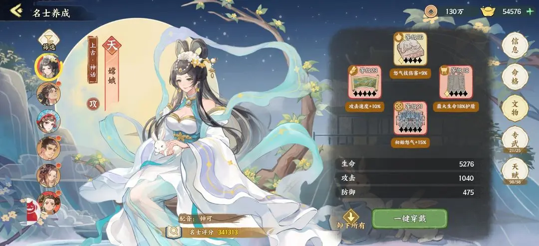 金银铜器位:首推曾候乙编钟(公会战获取),没有的话带妇好铜钺