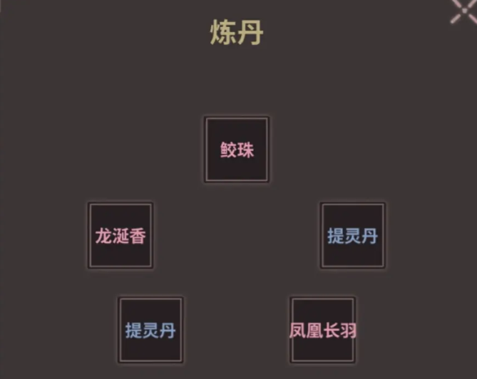 组合:蛛丝 1木2土、应龙鳞 3五行、龙涎香 4木土、万年铁木 1金4木、纯青琉璃心 3金木