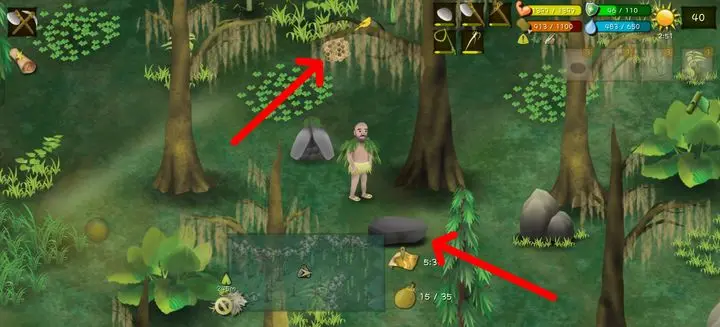 1、在地图右上方一棵树上能看到一个蜂巢。第一次来到这个蜂巢时触发隐藏任务,首先让在箭头所指的石板上放花(也就是放水葫芦花)