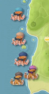 心动小镇梦光影庆典中会出现5种鱼类,其中四种在全天气全时间阶段下在鲸鱼海可以看到,它们分别是绀帽导演侏儒章、棕帽导演侏儒章、青帽导演侏儒章、褐帽导演真蛸,第五种花帽导演真蛸在八爪娱事件额外阶段随机触发。