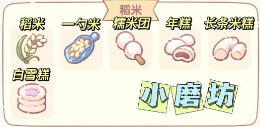 稻米、一勺米、糯米团、年糕、长条米糕、白雪糕