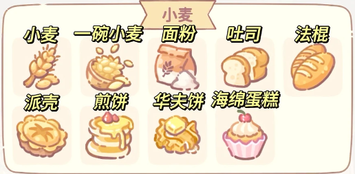 小麦、一碗小麦、面粉、吐司、法棍、派壳、煎饼、华夫饼、海绵蛋糕