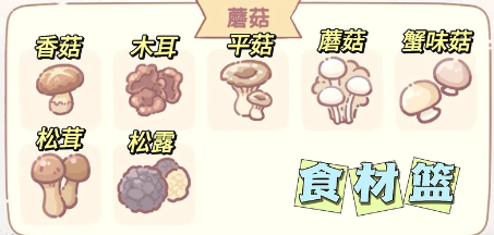 香菇、木耳、平菇、蘑姑、蟹味菇、松茸、松露