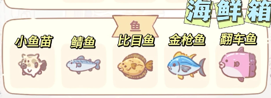 小鱼苗、鲭鱼、比目鱼、金枪鱼、翻车鱼