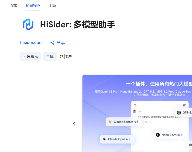2、这里选择并搜索的是hisider多模型助手