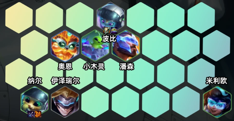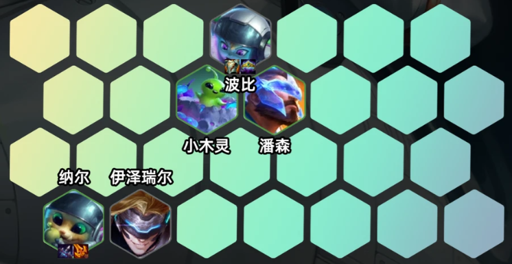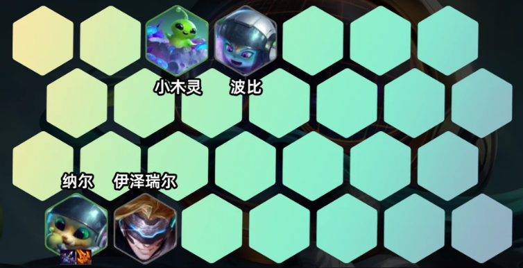 2-1升4级,前期推荐用木灵搭配未来战士或者未来战士,搭配海魔人过渡,装备优先给纳尔或二星伊泽瑞尔过渡