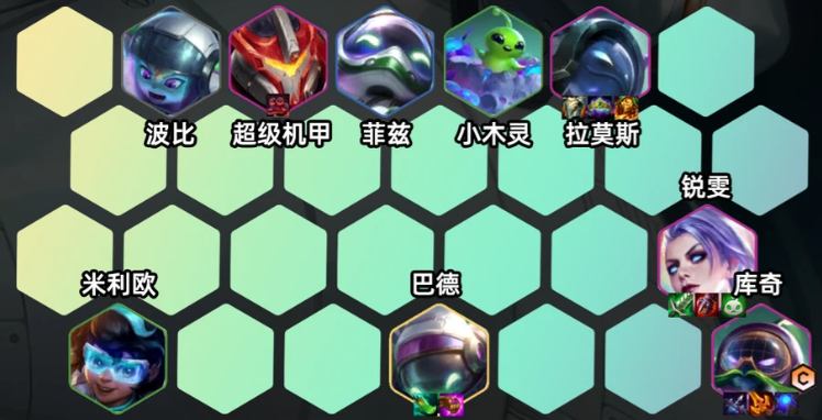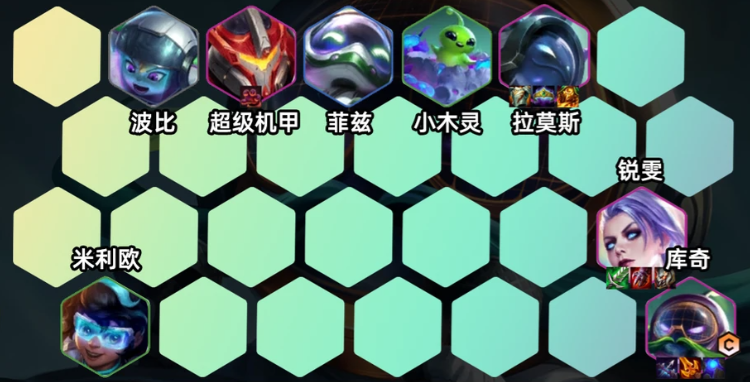 1、波比+超级机甲+菲兹+小木灵+拉莫斯+锐雯+米利欧+锐雯+库奇