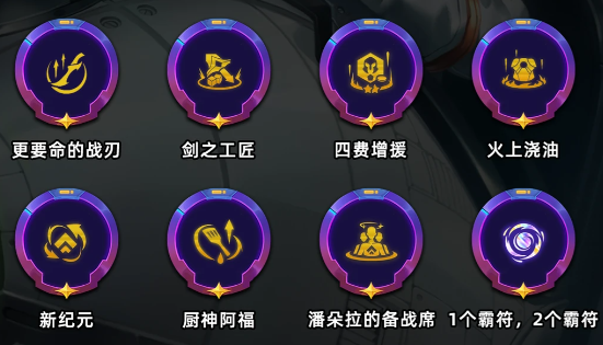 更要命的战刃、剑之工匠、四费增援、火上浇油、新纪元、厨神阿福、潘朵拉的备战席、1个霸符,2个霸符