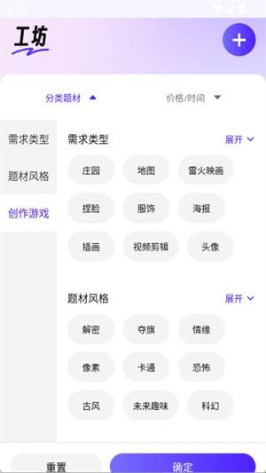 2、点击分类题材,可以根据题材,风格,类型筛选想要的内容