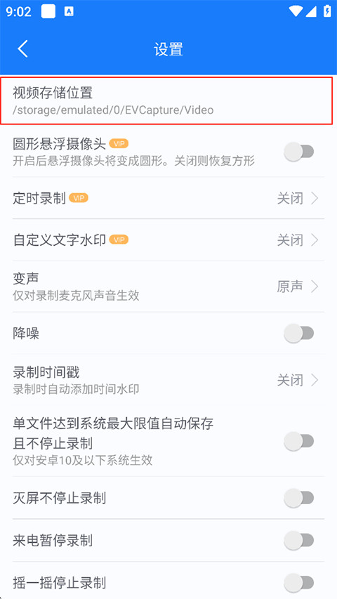 1、打开EV录屏app,在首页对视频参数进行调整,开启悬浮窗,最后点击开始录制