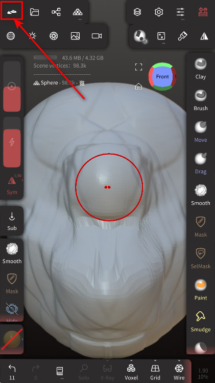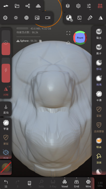 NomadSculpt是专为移动端用户打造的,但是需要谷歌环境才能正常使用。软件打开后是英文显示,但是根据下文图文教程,就可以将文字修改为中文。基础球体、立方体等模型,黏土、平滑等二十多种笔刷,动态拓扑、多分辨率雕刻等工具都可以自由选择使用,新手用户也可以轻松完成创作,无需专业的建模知识