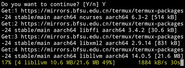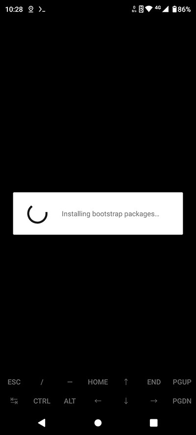 1、初次使用Termux,需等待Installing bootstrap packages (安装引导程序包)完成,如下图
