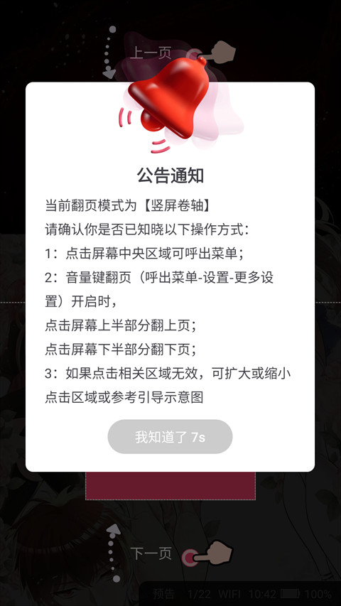 3、首次阅读时,还会弹出操作指南