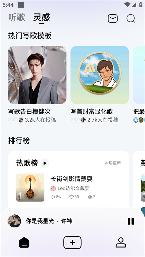 4、内置AI音乐社区,支持作品分享、热歌排行、内容畅听等功能,用户可发布作品、收获点赞与粉丝,与全球音乐爱好者交流