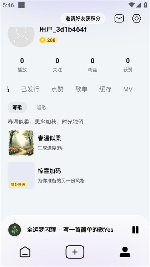 5、点击「生成歌曲」,在「我的」板块查看生成进度,完成后即可立即播放