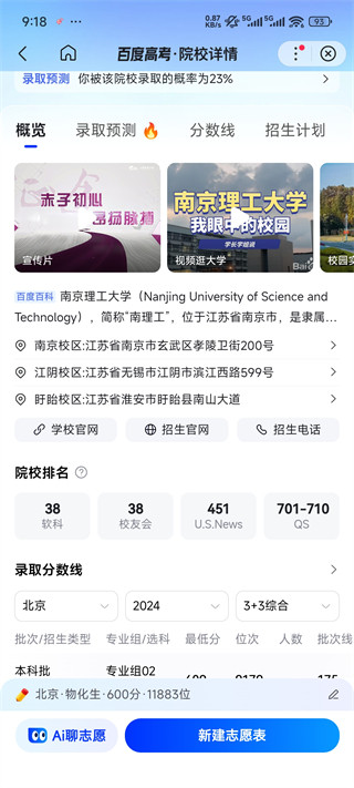百度AI智能志愿填报助手app就是百度app,AI智能志愿填报助手功能内嵌在百度app中,用户输入自己的模拟分数或者实际分数以及科目等信息之后,软件就会根据稳冲保原则,为用户推荐符合的学校以及专业,点击对应的学校和专业还可以查看更多信息,各种信息和数据都是同步学校官方的,较为可信