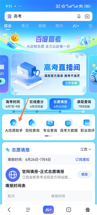 2、进入高考专题页面后,点击页面中的AI志愿助手