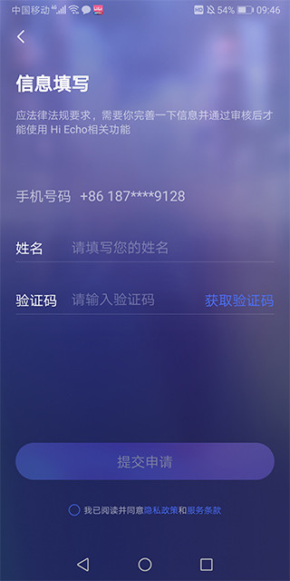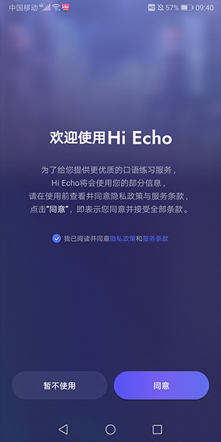1、打开HiEcho软件,勾选同意相关隐私政策和服务条款